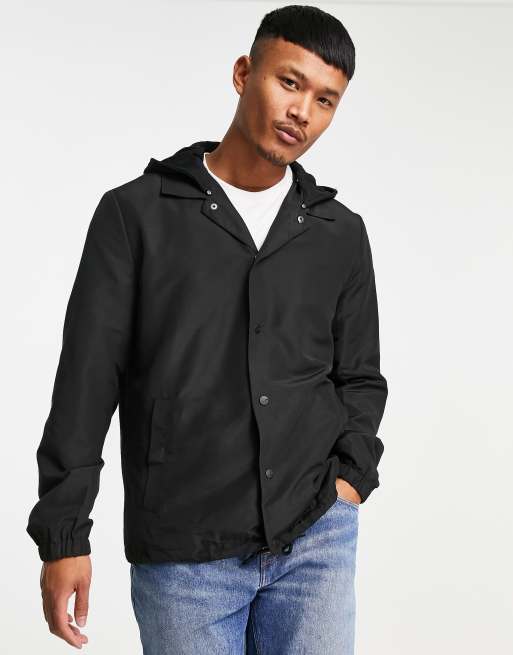 Only & Sons coach jacket with hood in black ASOS